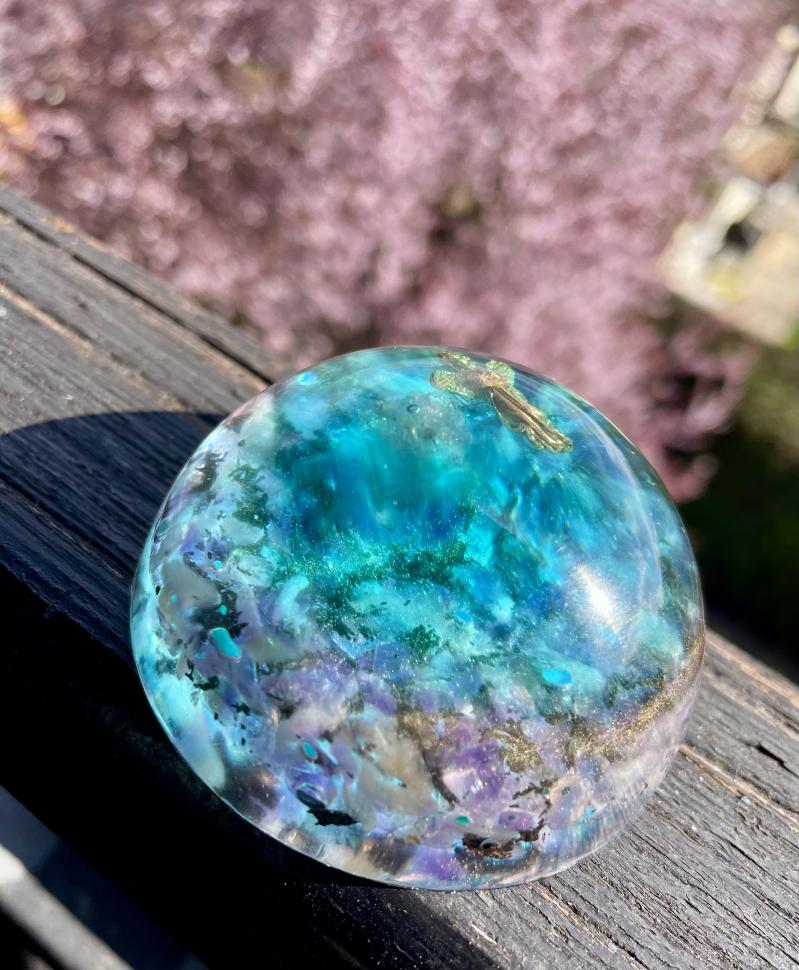 Je me connecte alors à la personne qui recevra l'orgonite,